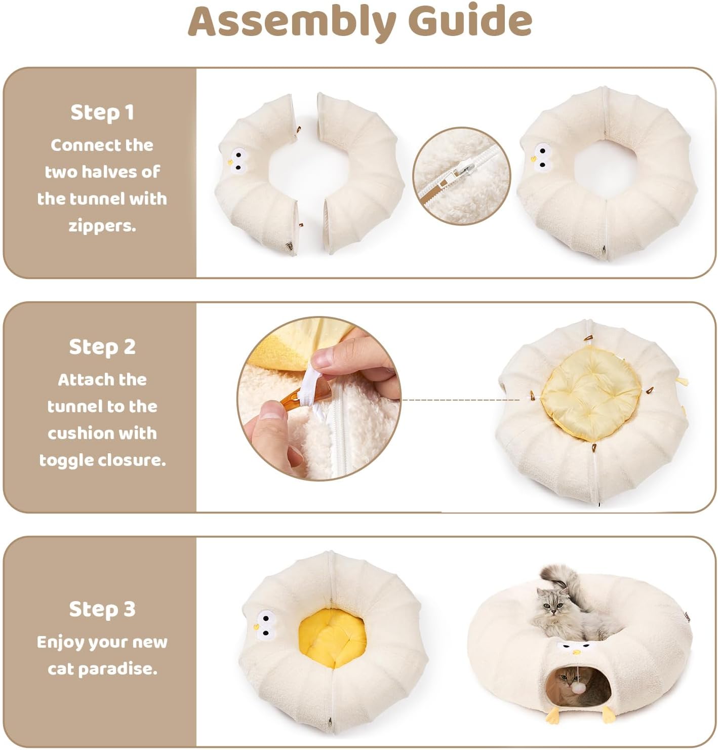 • Versatility: The innovative 2-in-1 cat tunnel bed allows your pet to play and rest at the same time. Designed with the excitement of a zippered play tunnel and the serenity of a cozy nap.