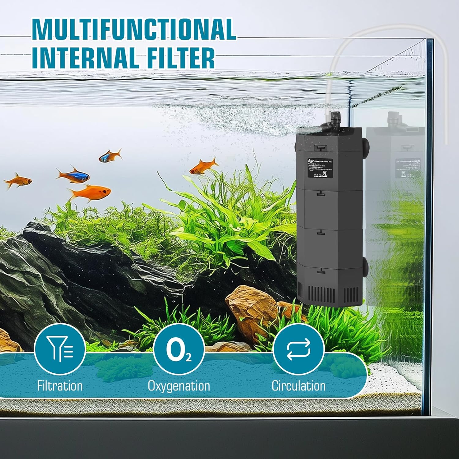 - 4-in-1 Multifunctional Aquarium Filter β The fish filter combines filtration, water circulation, aeration, and gentle wave making in one unit, ensuring clear water and stable oxygen levels. The soft current reduces dead spots and simulates natural water movement, promoting a balanced and thriving aquatic environment