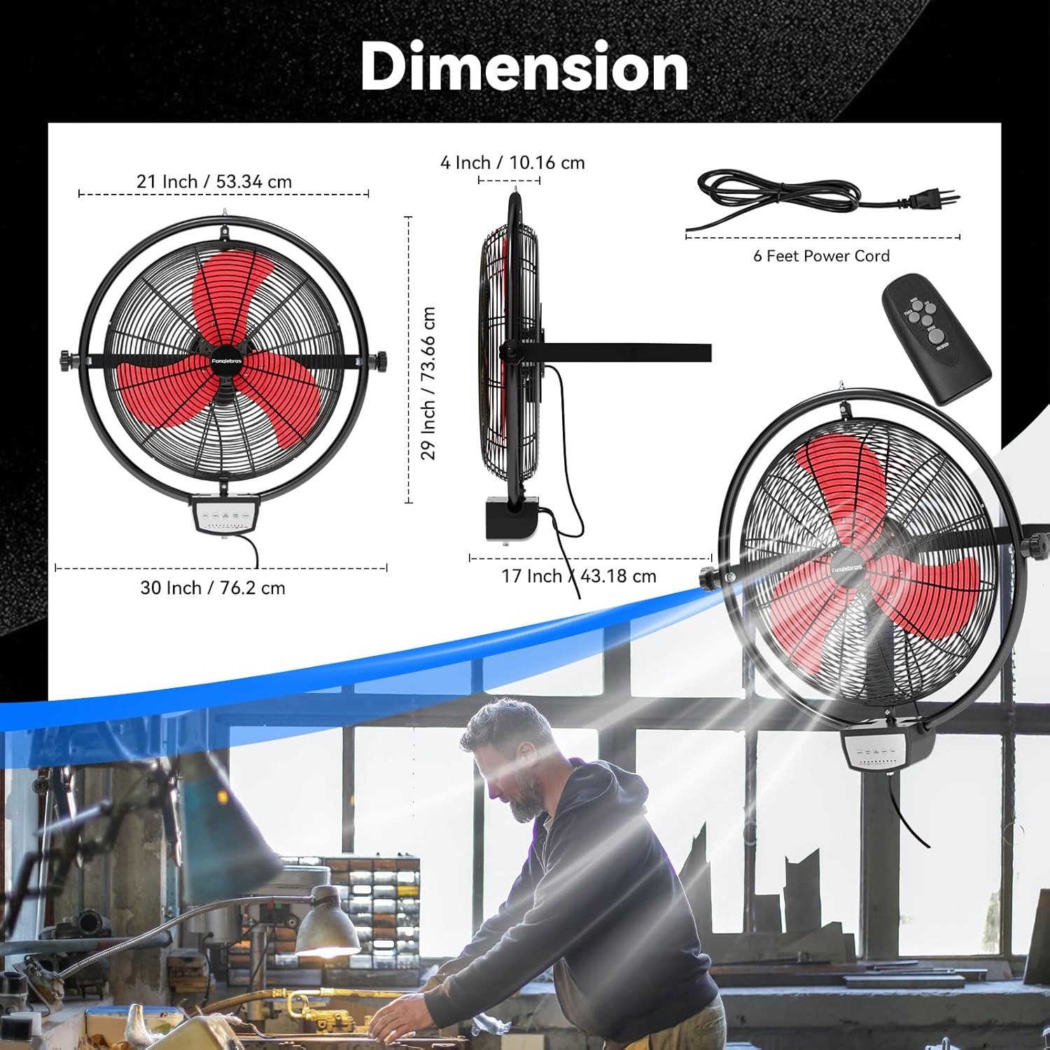 - ๐๐ข๐ ๐ก ๐๐๐ฅ๐จ๐๐ข๐ญ๐ฒ ๐๐ข๐ซ ๐ ๐ฅ๐จ๐ฐ - The heavy duty wall fan design makes the operation more intuitive and simple, and the high, medium and low speeds can be adjusted by the remote control to meet different needs. High speed 5500 CFM, medium speed 4000 CFM, low speed 3800 CFM, providing hurricane-like airflow to meet your garages, shops or outdoor use๏ผNote: used on a covered patios or porch, BUT NOT EXPOSED TO RAIN๏ผ