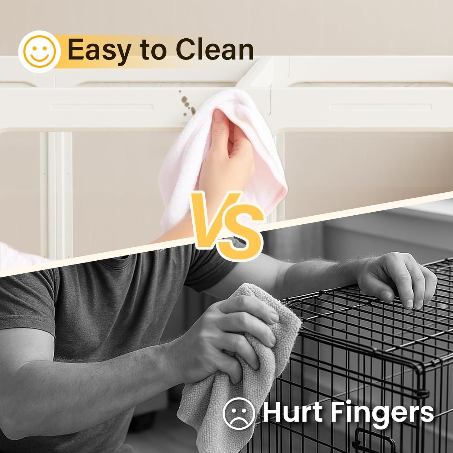 - 【Easy Assembly】Our dog playpen indoors requires no tools and can be assembled in minutes. The interlocking joints ensure a secure and stable structure, making it easy to transport and clean. Perfect for both indoor and outdoor use.