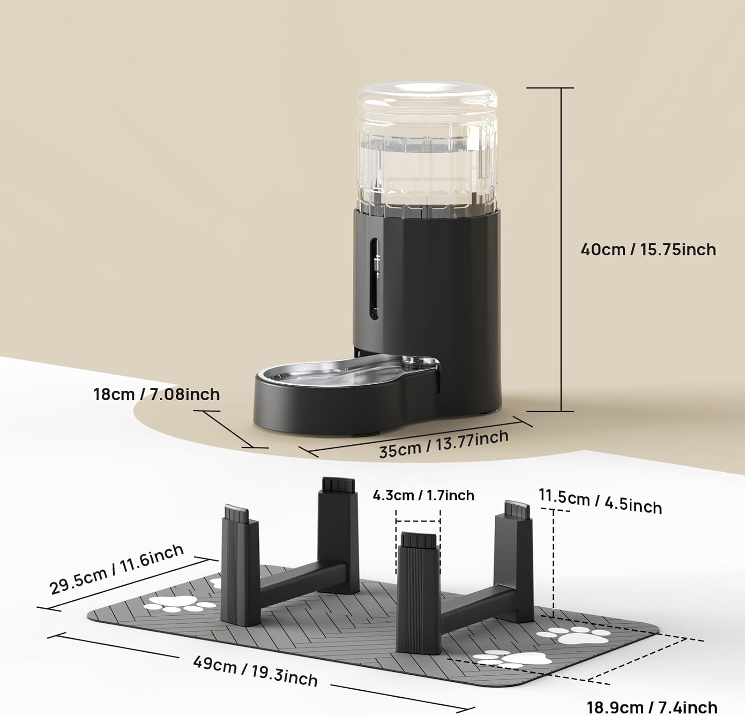 - [ Ultra-Large Capacity & Ergonomic Height]: Enjoy worry-free trips! This dog water bowl dispenser holds enough water to last 2-23 days (depending on your pet’s size). The elevated stand promotes comfortable, neck-friendly drinking posture, reducing strain on your pet’s spine and joints.