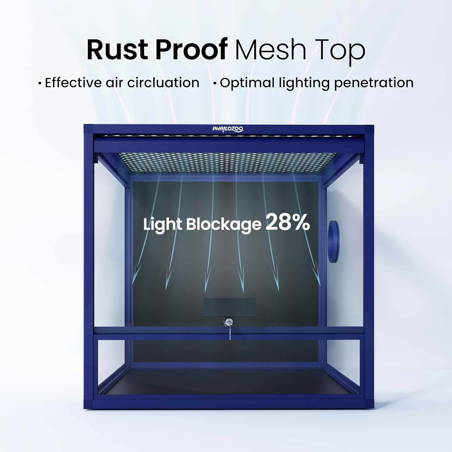- ăPerfect for BeginnersăPhailozoo 24-gallon reptile tank with single grommet measures 18'Lx18''Wx18''H. It only weighs 16.5 pounds. Easily assembled in six steps, perfect for first time reptile keepers.