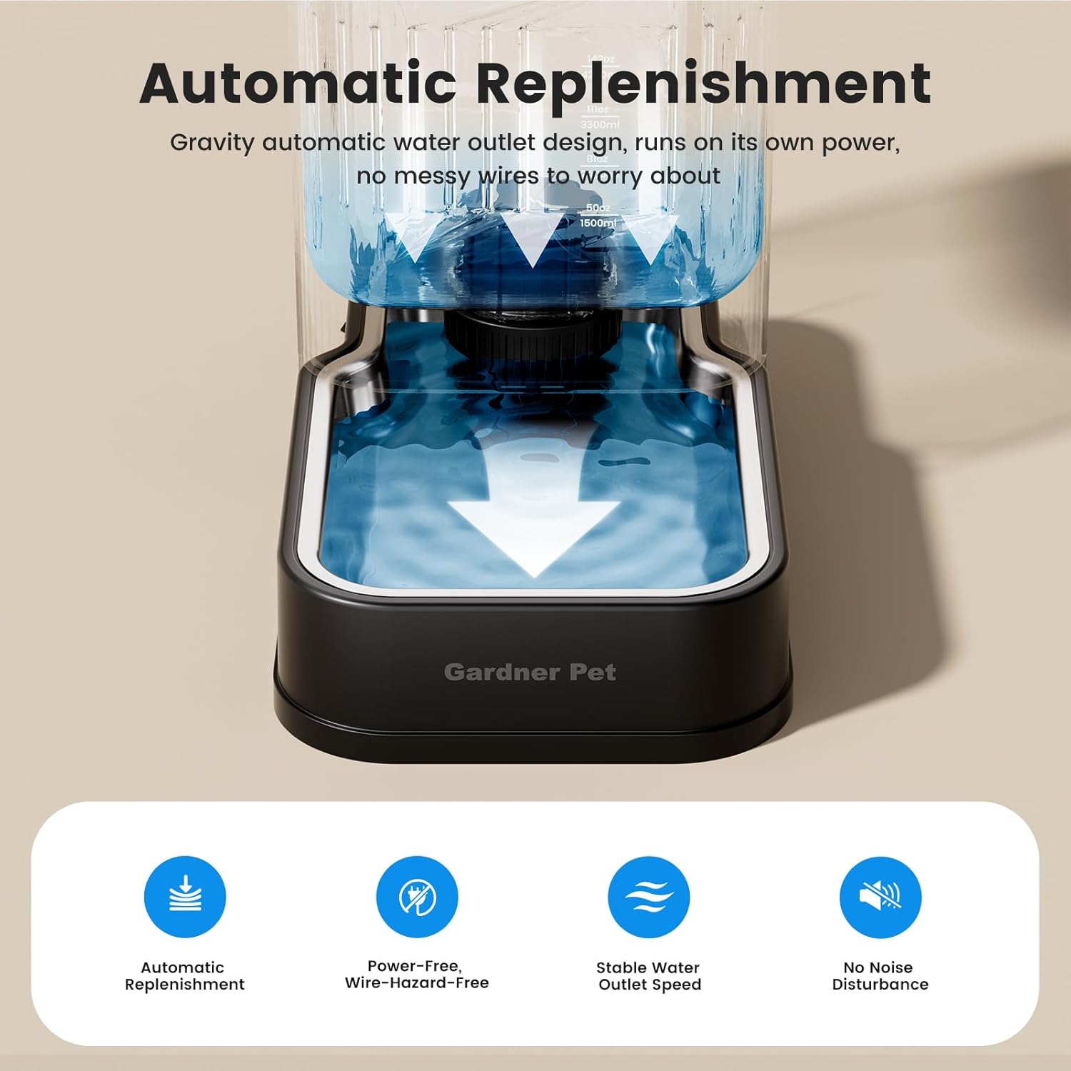 Gardner Pet Automatic Dog Water Dispenser Gravity Waterer with Stainless Steel Bowl Water Dispenser 6.5L Large Capacity Water Feeder for Dogs Cats Pets, BPA-Free Noise-Free (Black, 6.5L)