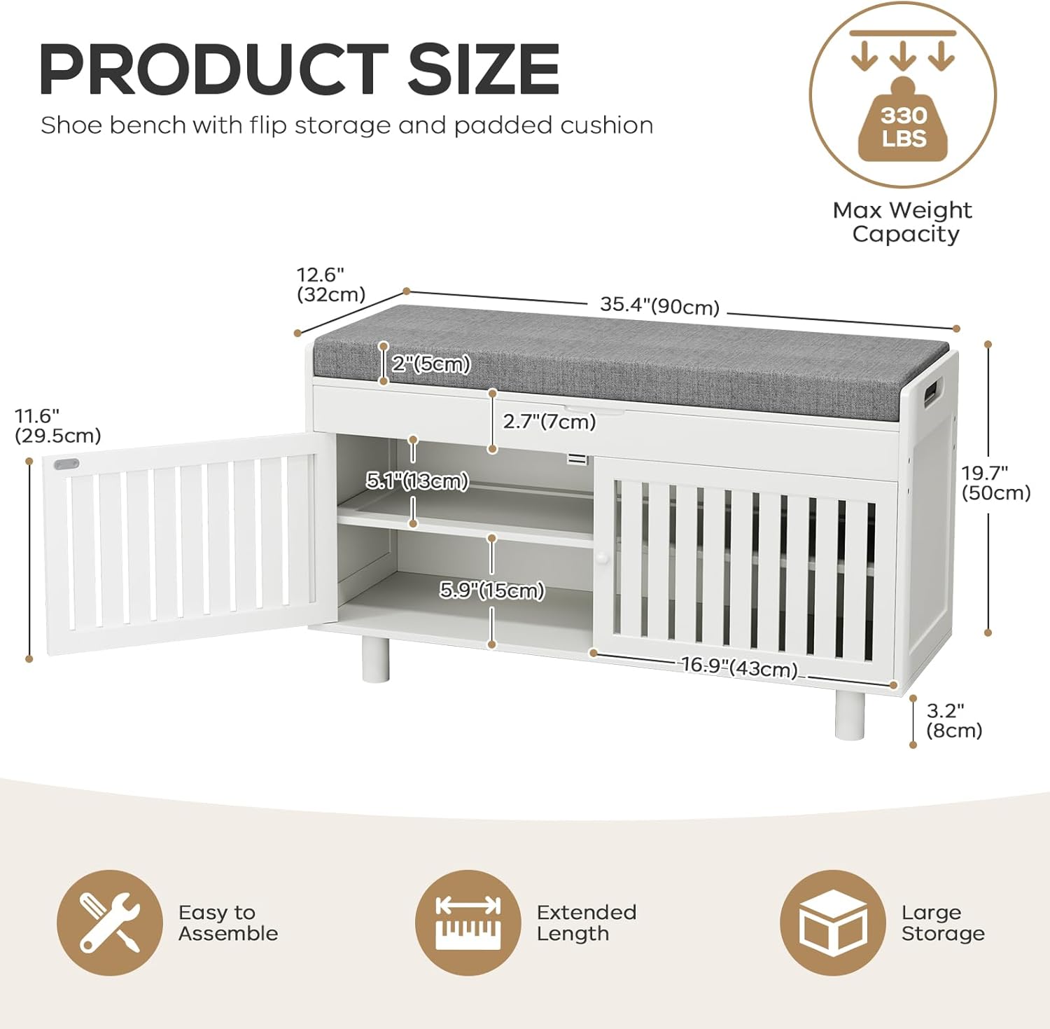 - 【Easy Assembly & Durable】- The shoe bench with storage is easy to install following the manual.Comes with illustrated instructions, and the whole assembly process can be completed quickly. If you have any problem, please feel free to email us, we will spare no efforts to offer you our help.