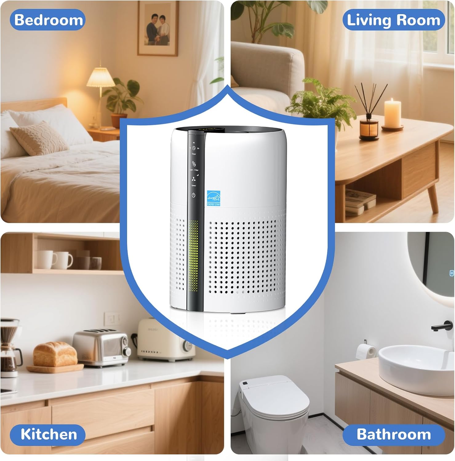 - 🚀Smart Controls: Features 3 fan speeds, sleep mode, 2/4/8-hour timer, and 7-color mood light for customizable comfort. Operating as quietly as 22dB, this HEPA air purifier is perfect for nurseries, study rooms, and bedrooms, ensuring fresh air without disturbing sleep.