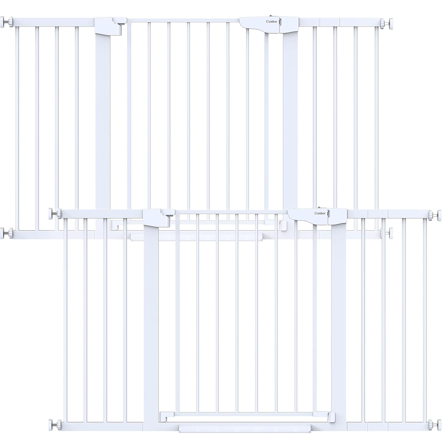 Cumbor 2 Pack 29.7-54.2" Baby Gate for Stairs, Mom's Choice Awards Winner-Auto Close Dog Gate for Doorways, Easy Install Pressure Mounted Pet Gate Indoor, Wide Safety Gate for Dog, White