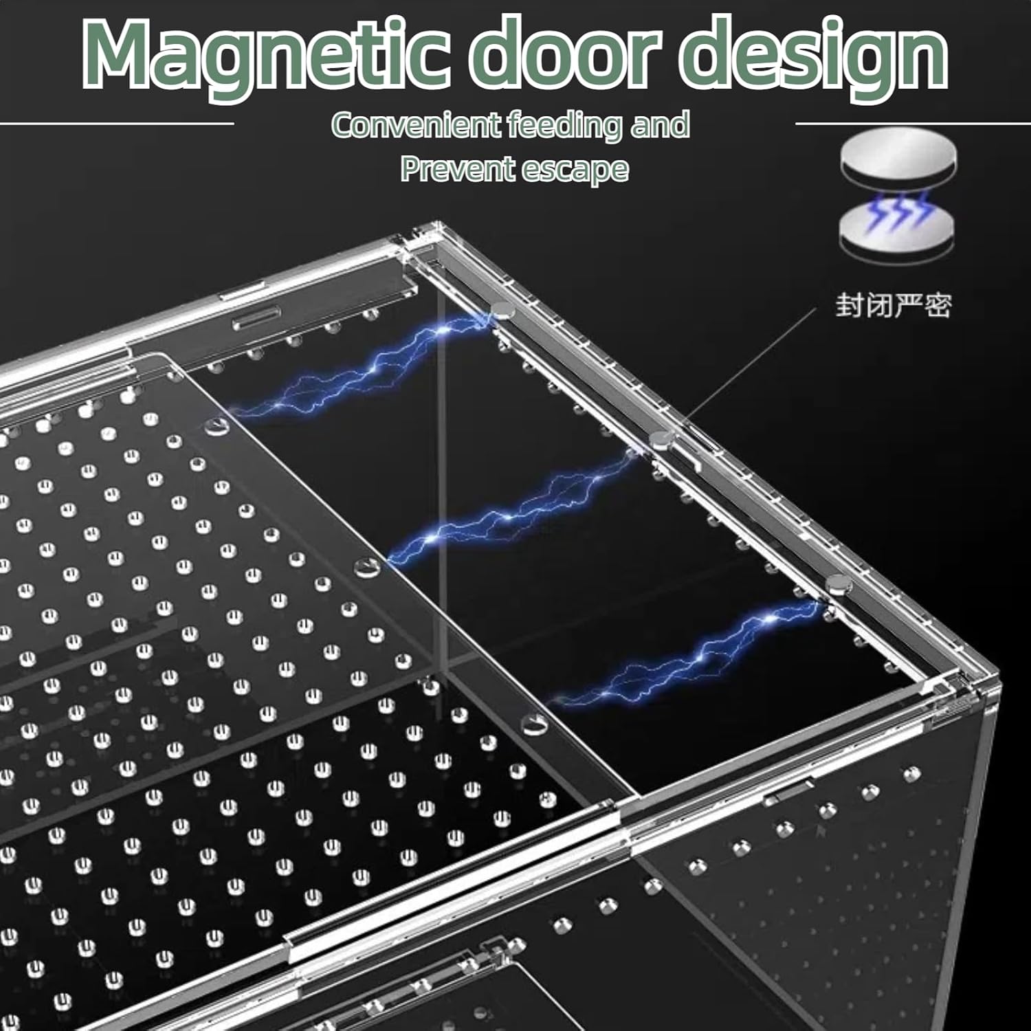 - 【No Assembly Required】: the tank forms a one-piece, waterproof structure—no assembly required. With a top magnetic door , it also ensures an escape-proof design, ideal for hermit crab enclosures, jumping spider enclosures, and other small reptile habitats.