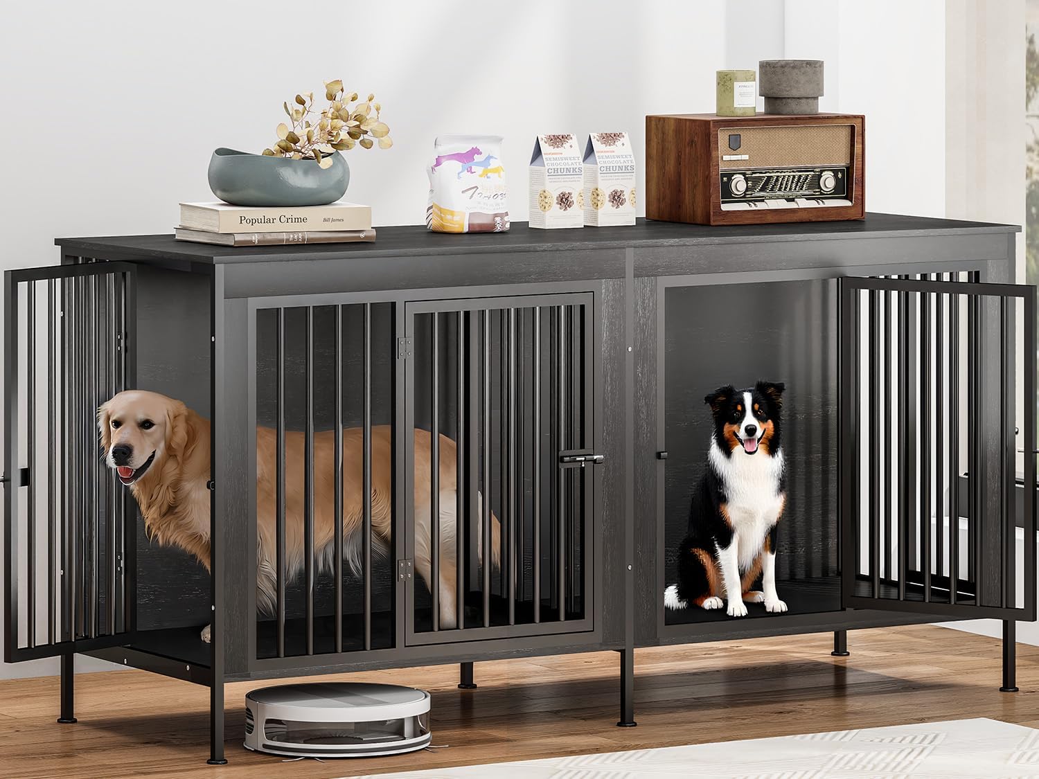 - Robot-Friendly & Easy to Clean: Raised 3.94 inches off the ground, dog crate furniture supports sweeping robots to pass through easily, making daily cleaning a breeze. The elevated base also prevents moisture buildup and keeps the bottom dry and hygienic for your pets