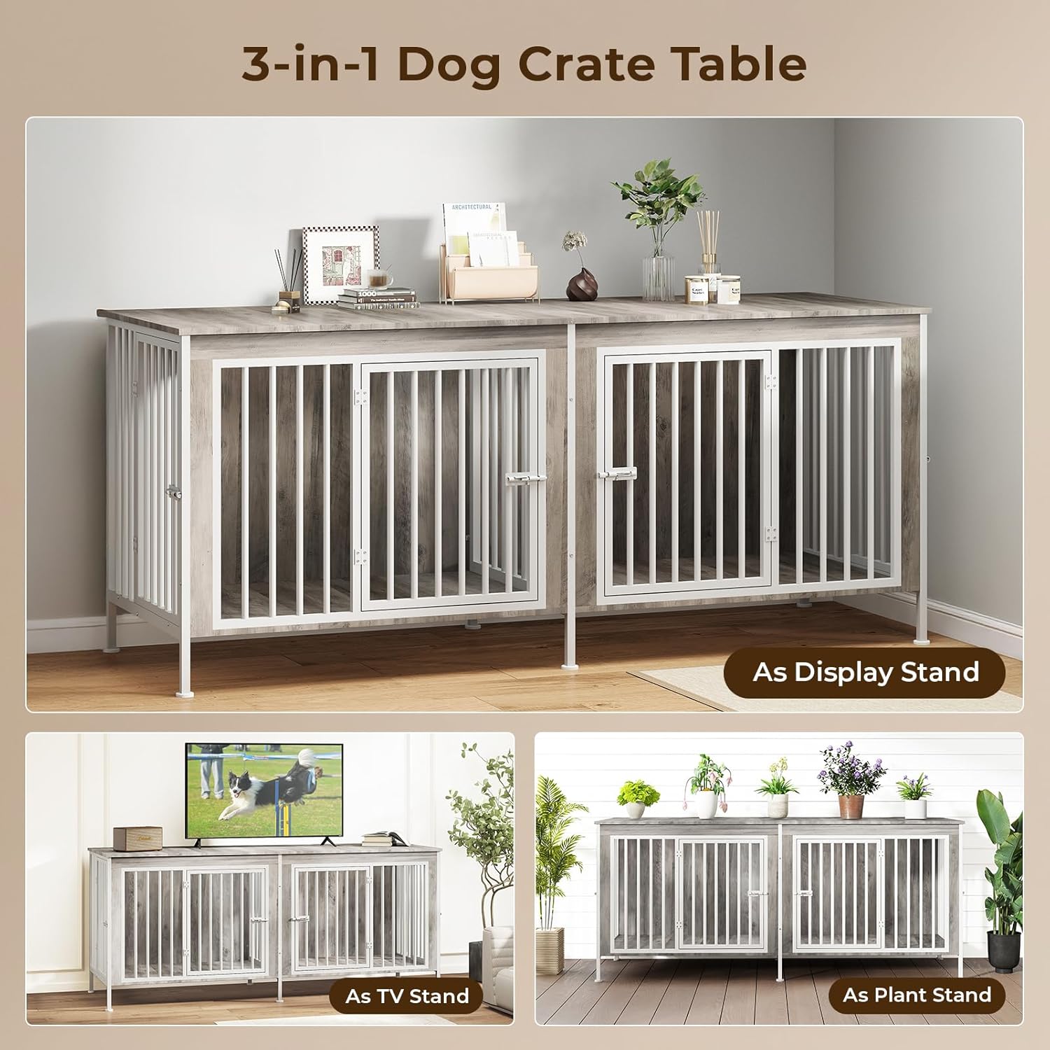 - Spacious Room for Two Dogs: With overall dimensions of 62.99" W x 23.62" D x 27.36" H, this extra large dog crate provides a roomy and comfortable resting space for two medium or large-sized dogs. The removable middle divider allows flexible use—either keep dogs separately or give them one big shared space