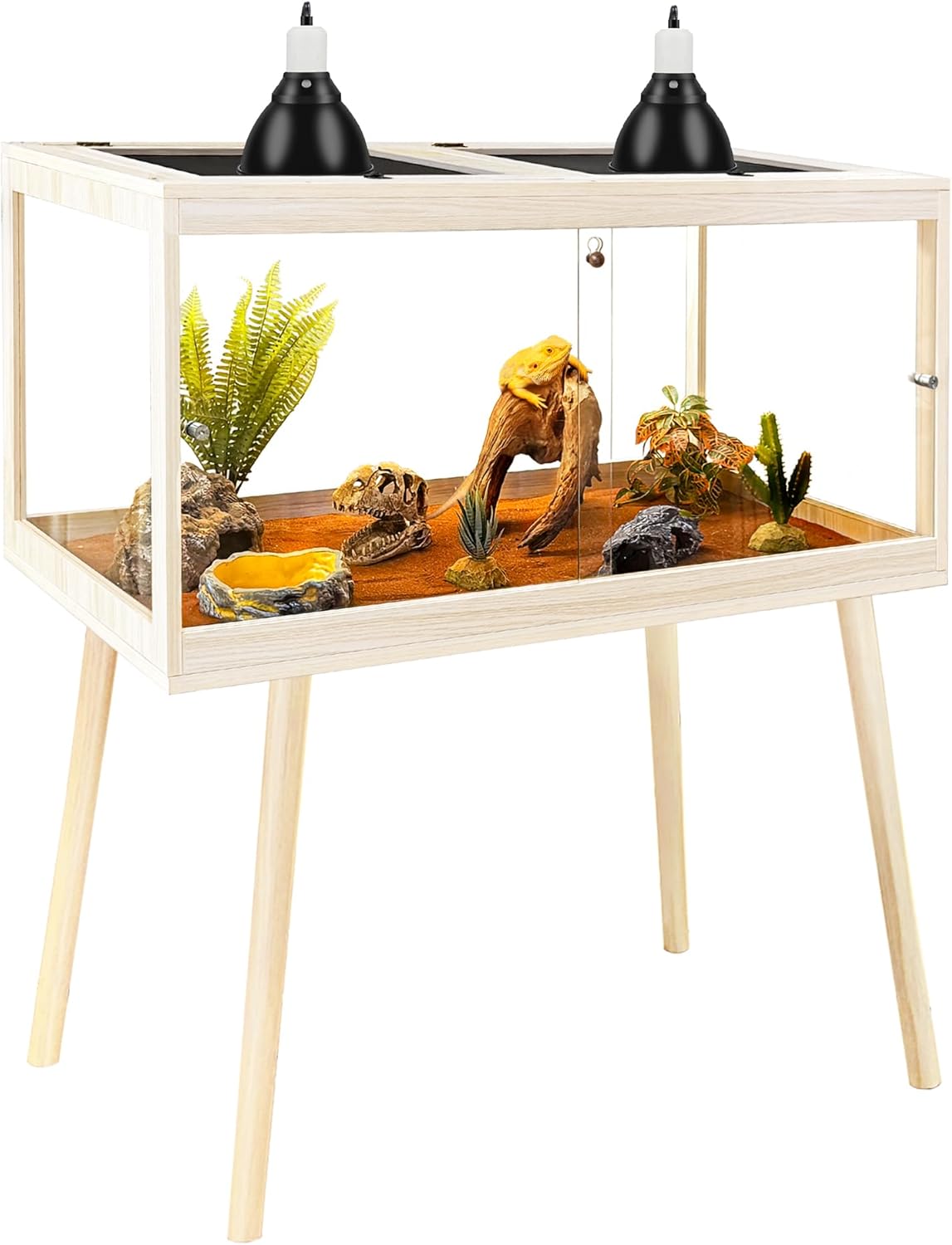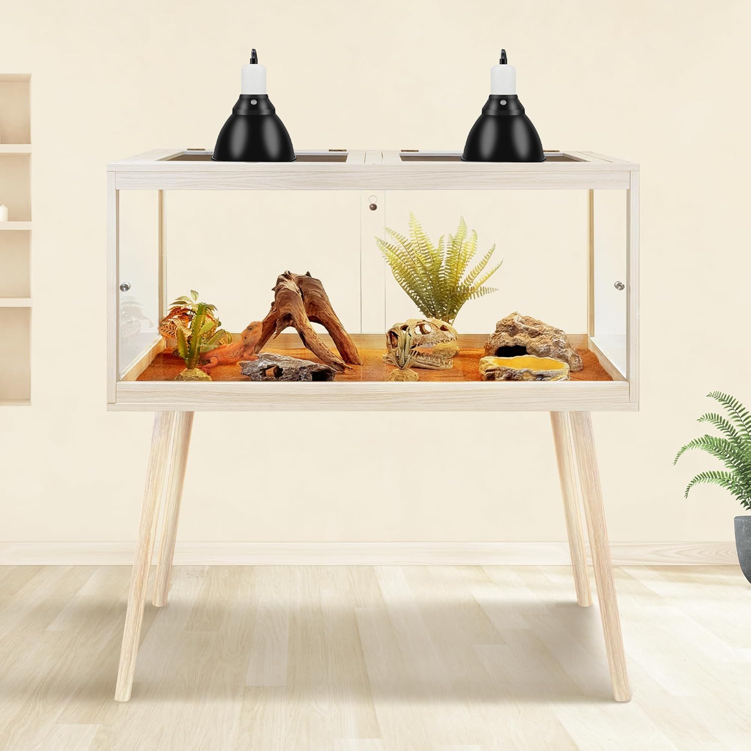 - 【Spacious and Comfortable Interior】Available in four length options (24", 30", 36", and 48"), each unit including 4 legs, saves your money on preparing a table or stand. This enclosure provides ample room for reptiles to explore, bask, and hide. Check the second image for detailed dimensions to choose the right size for your pet. An acrylic bottom liner helps with mess management and simplifies cleaning.