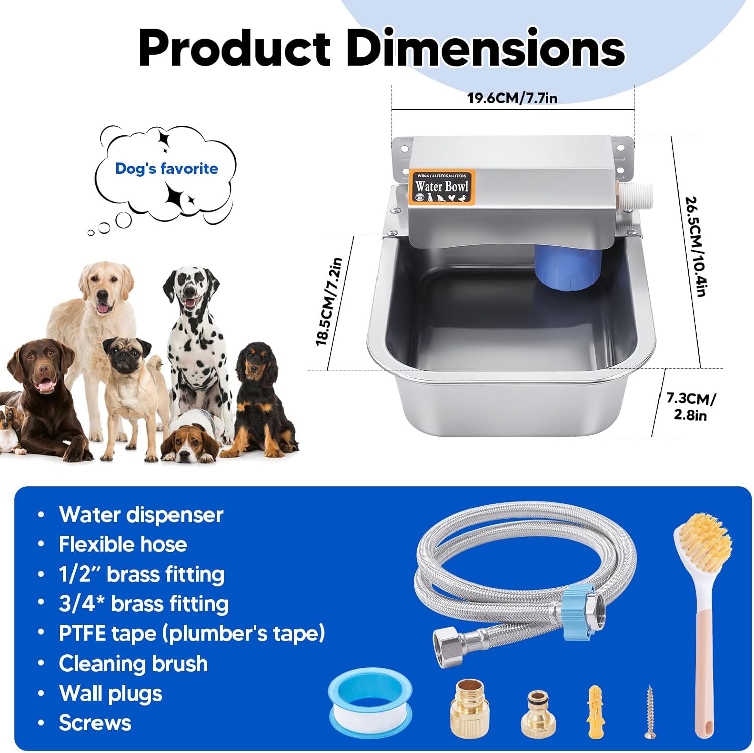 - EASY TO INSTALL:The dog water bowl dispenser comes with a complete set of accessories such as brushes, expansion screws, copper connectors, and detailed instructions. The copper fitting is suitable for connecting 3/4 inch faucets and is easy to install. Tips: If you encounter any obstacles during installation, please feel free to contact us and we will assist you to solve the problem