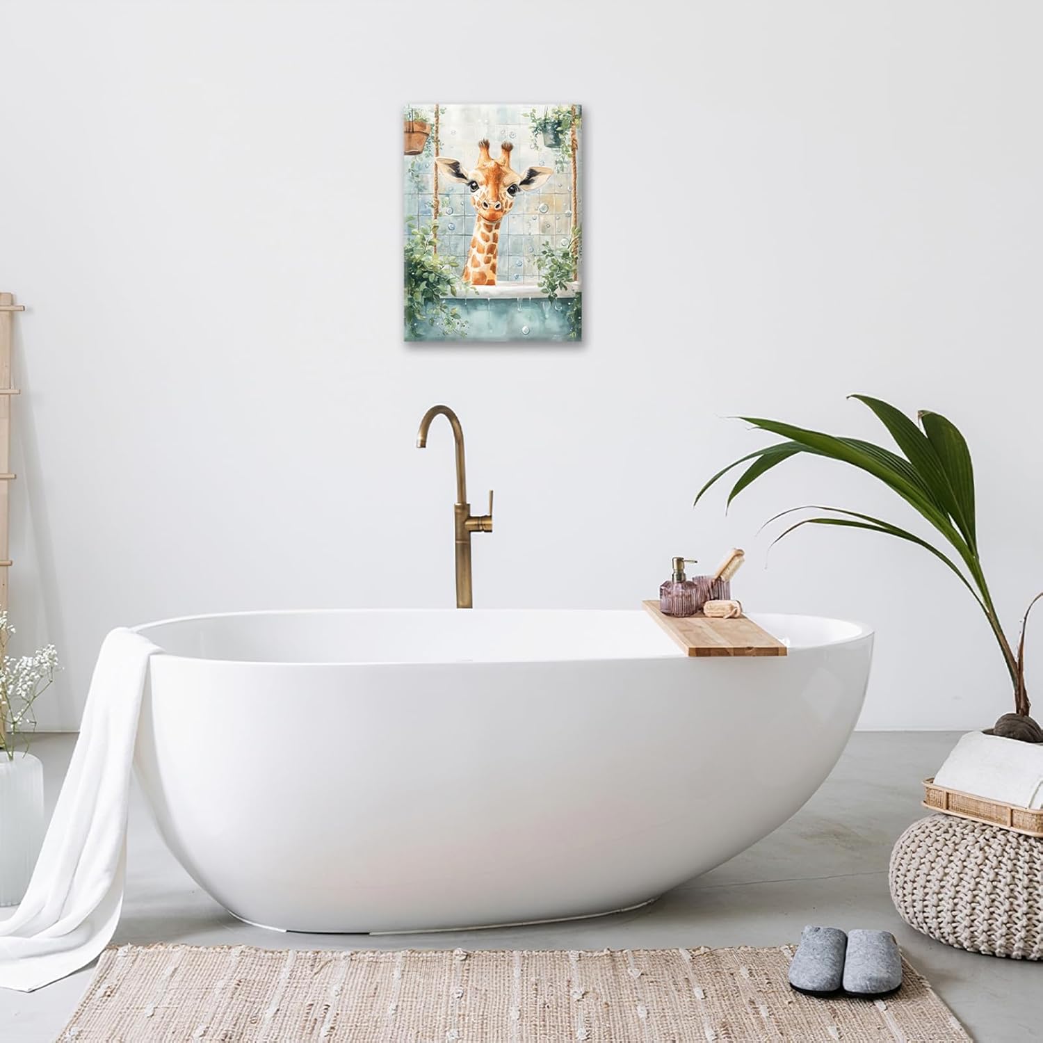 Bathroom Funny Giraffe Pictures Wall Art, Watercolor Giraffe Bathroom Wall Decor, Animal Framed Painting Canvas Artwork for Living Room Decorations 16"L x 12"W