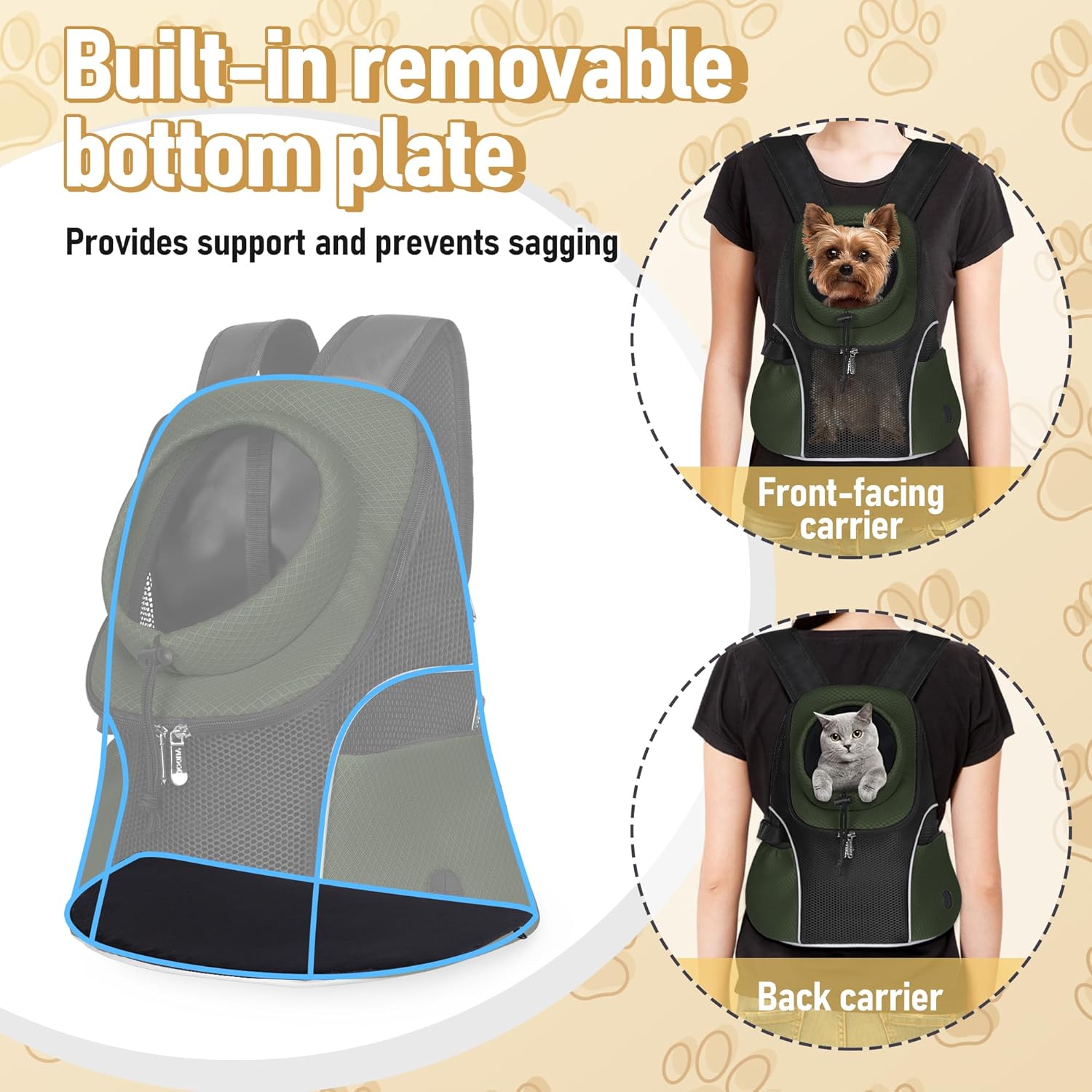 WOYYHO Pet Dog Carrier Backpack Small Dog Front Backpack Ventilated Mesh Dog Travel Back Pack with Safety Belt for Travel Hiking Cycling Outdoor Adventures (Size L: 10-14 lbs, Army Green)