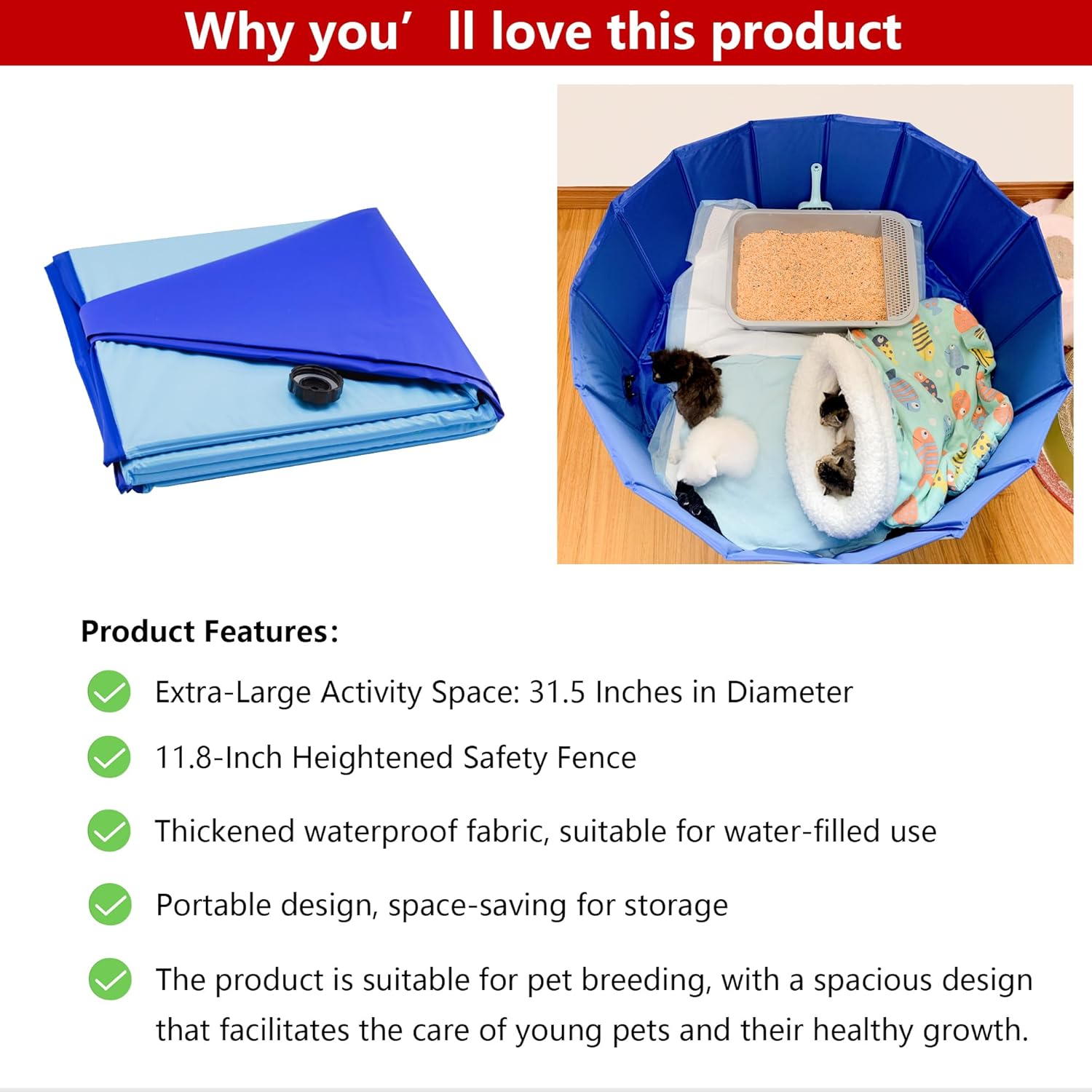 Birthing and Activity Bed for Kittens Puppies and Small Pets, Large Foldable Pet Nest, 31.5 Inch Diameter 11.8 Inch Height