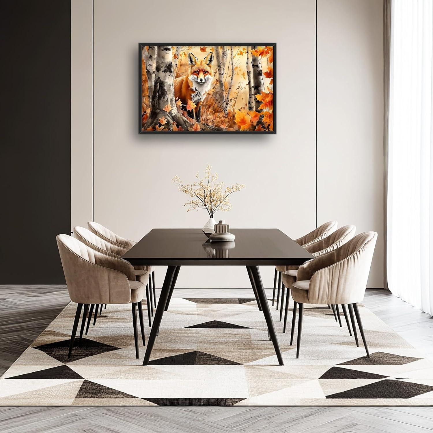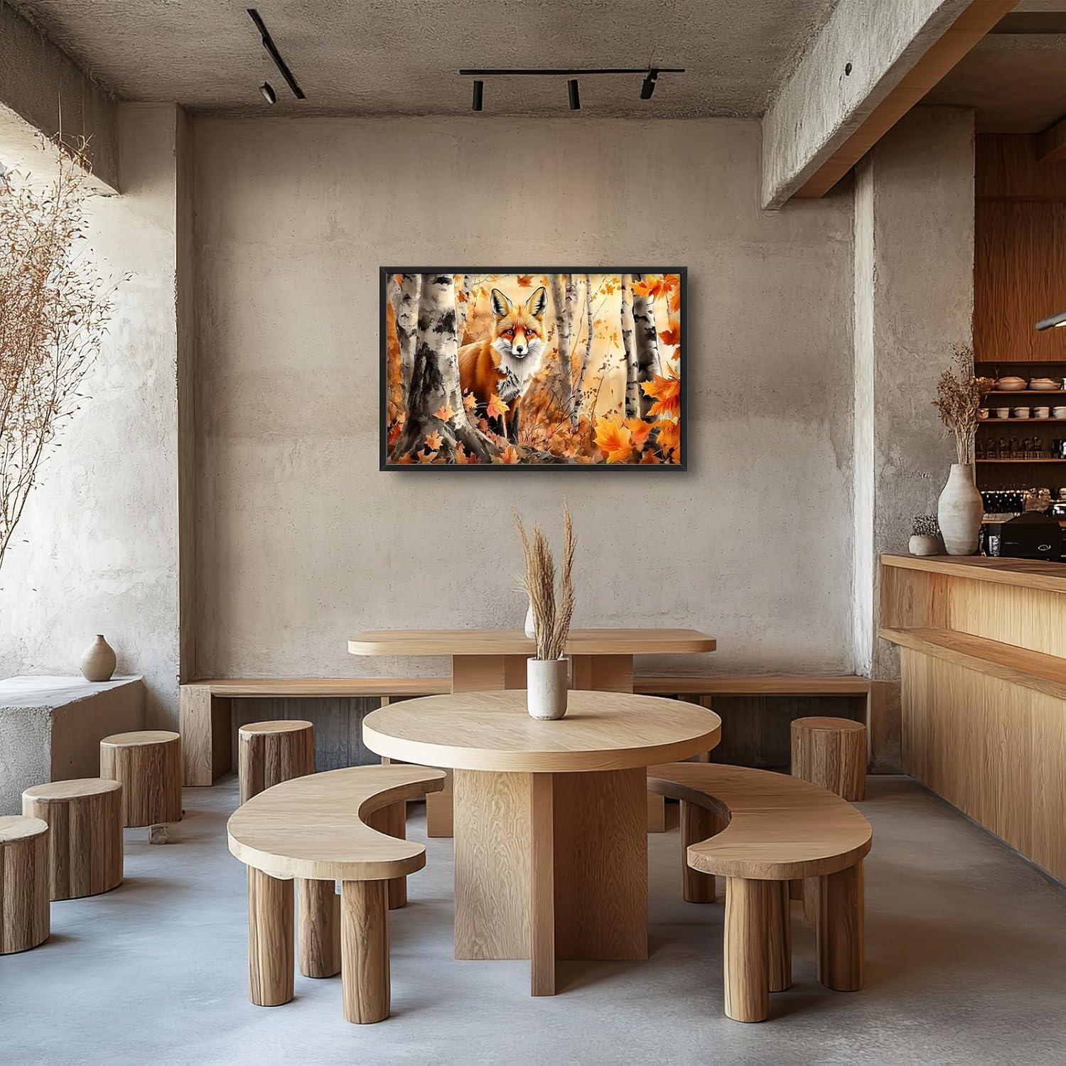Large Fox Wall Art for Living Room, Framed Oversized Fall Autumn Forest Wall Decor Tree Maple Leaves Canvas Painting Modern Artwork for Living Room Bathroom Bedroom Office Dining Room 36"x24"