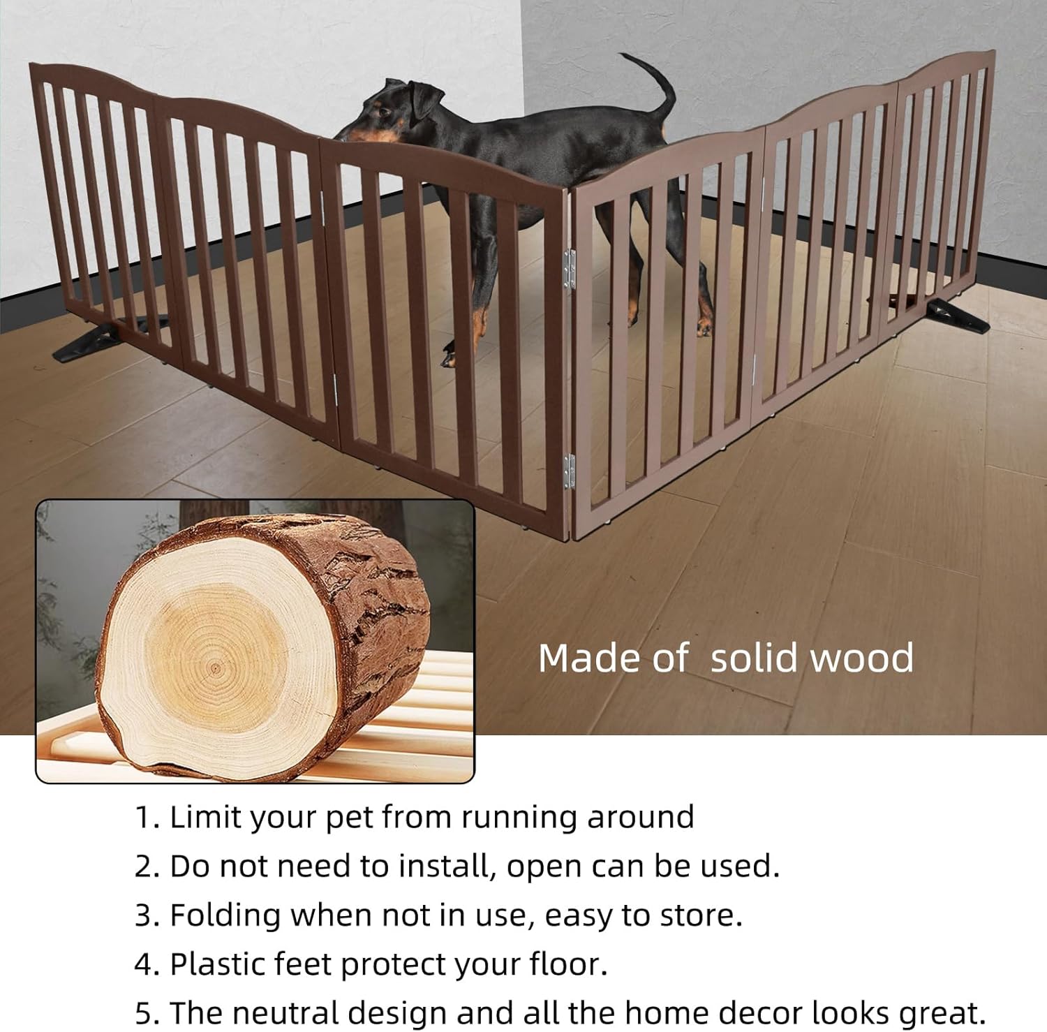 - 【6 PANELS】 Dog gates is built with 6 separate panels, secured together with sturdy stainless steel hinges.dog gates is a dog fence, room divider, and pet pen all in one.