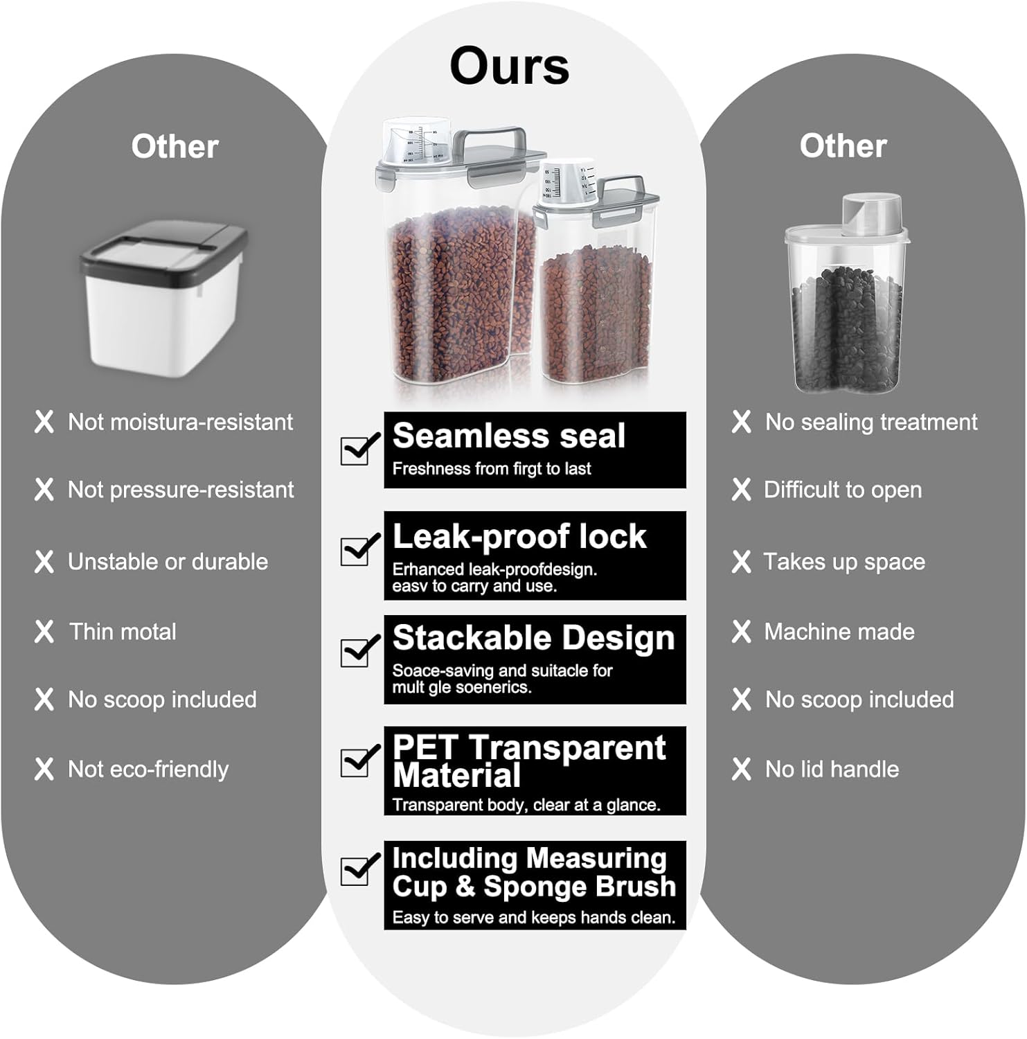 - MATERIAL: BPA-free durable plastic container-reusable and practical pet food storage container is made of BPA-free food-grade plastic.Safe for storing human food or pet food.Durable enough,long-lasting,easy to clean,transparent body,food can be seen at a glance.