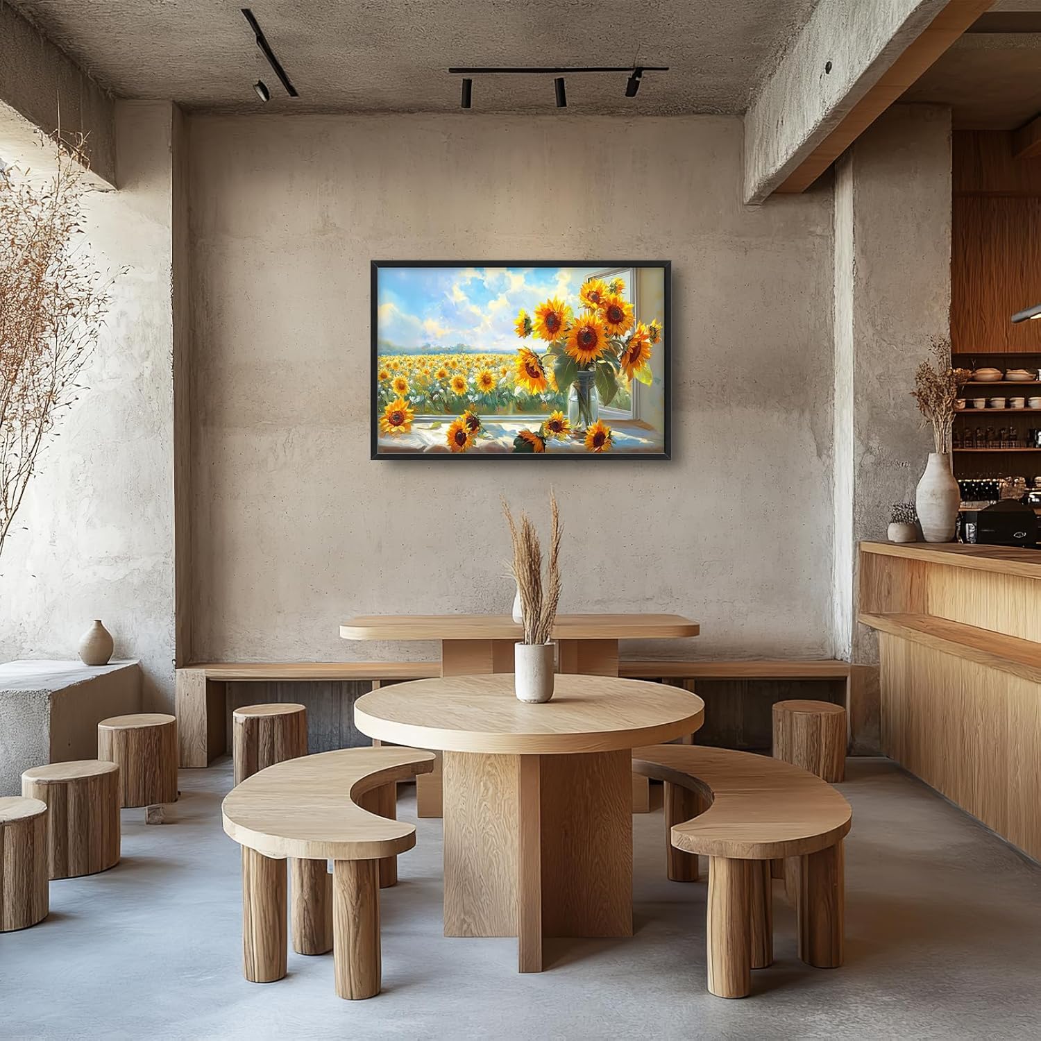 Large Sunflower Wall Art for Living Room, Framed Oversized Flower Field Wall Decor Nature Landscape Canvas Painting Modern Artwork for Living Room Bathroom Bedroom Office Dining Room 36"x24"