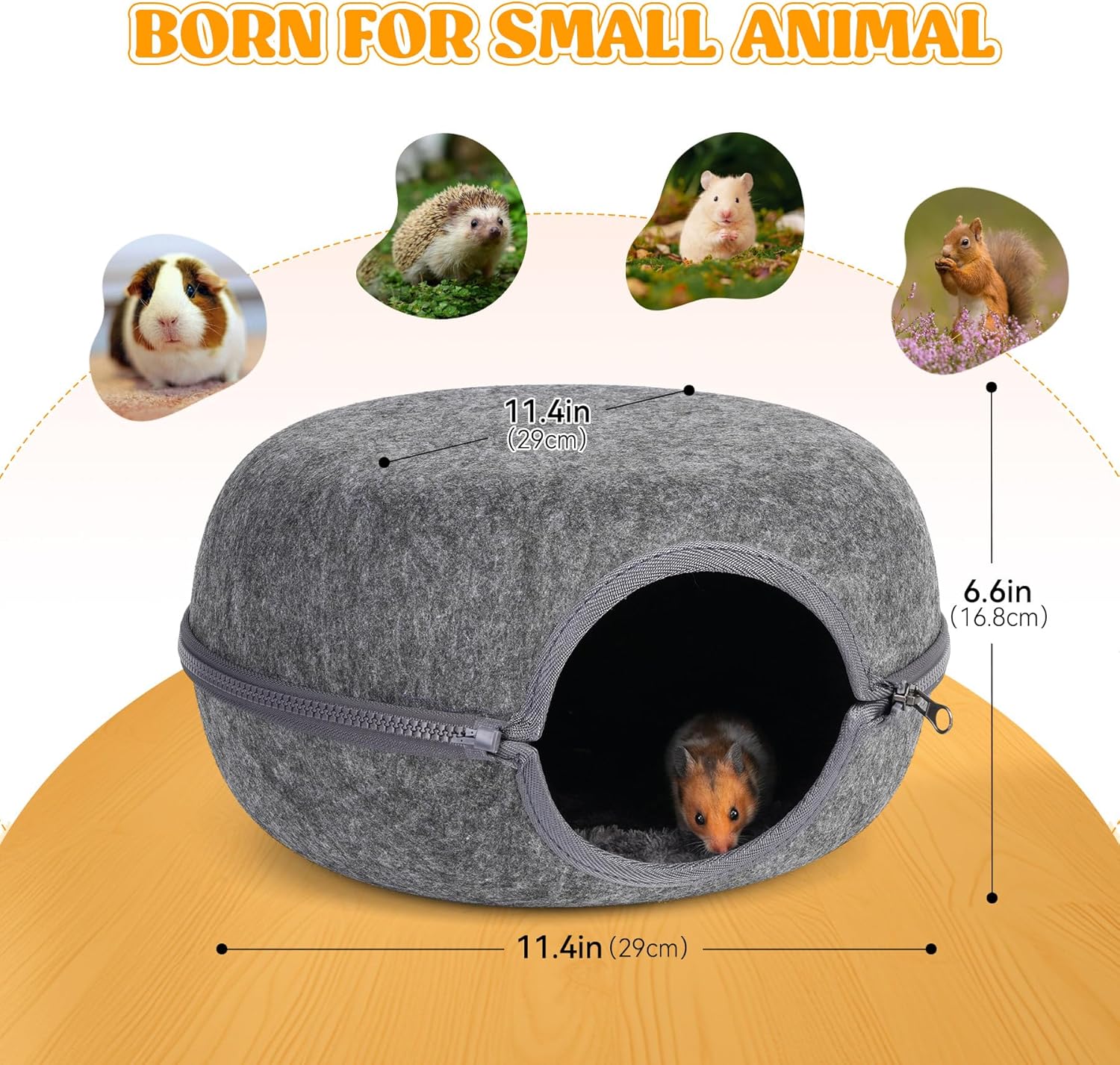 - Friendly Size: 11.4x11.4x6.6in, suitable for small animals such as guinea pigs, chinchillas, hamsters, ferrets, hedgehogs, etc. to rest and hide. It can be used conveniently in cages, fences, corners, and when traveling with pets