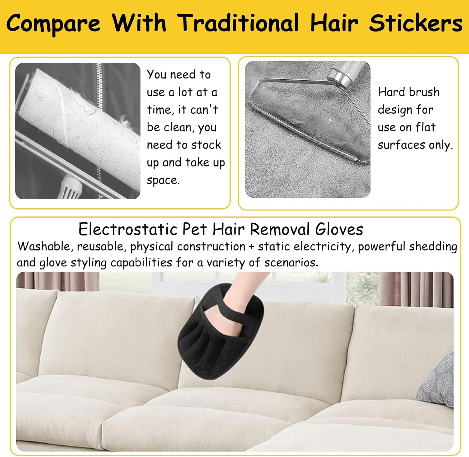 Vingtank 2Pcs Pet Hair Remover Glove, 2025 Upgraded Pet Hair Remover Electrostatic Gloves Reusable Cat & Dog Hair Removal Tool for Couch, Furniture, Carpet, Car Seat