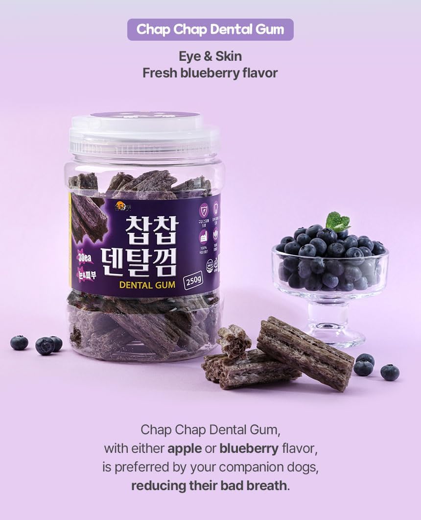 SSOMDALPET Chap Chap Dental Gum for Dogs, 30 Chews | Soft & Chewy, Dental Care Treat, Large Pack, Joint & Bone, Eye & Skin, Gut & Probiotics Options (30 Count, Eye & Skin (Blueberry/Purple))