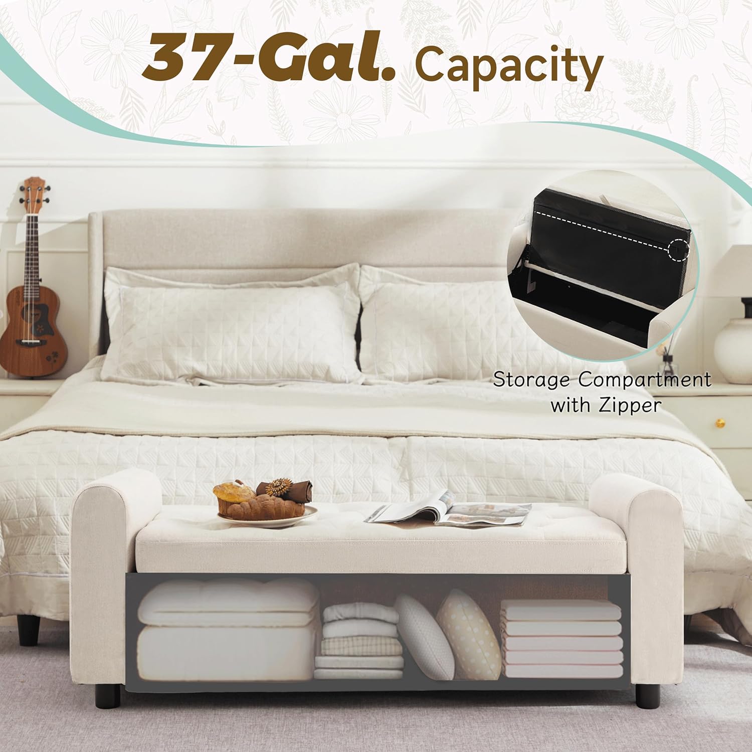 - ๐๐ง๐ญ๐๐ซ ๐ ๐ซ๐จ๐ง๐ญ ๐๐จ๐๐ค๐๐ญ ๐๐จ๐ซ ๐๐๐ฌ๐ฒ ๐๐๐๐๐ฌ๐ฌ ๐ญ๐จ ๐๐ฌ๐ฌ๐๐ง๐ญ๐ข๐๐ฅ๐ฌ-Our storage bench has a larger capacity of 37 gallons, allowing you to store more items. In addition, it features creative and thoughtful designs that take everyday usability in mind. Inside the front panel, youโll find 2 pocketsโperfect for stashing items you need often, like socks, remote controls, keys, or earbuds. No need to dig through everything to grab what you use most.