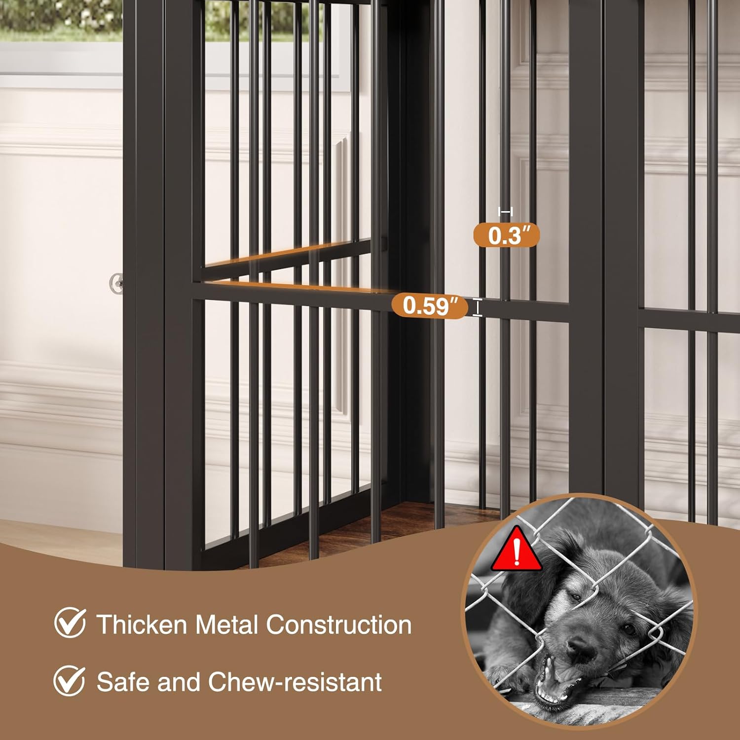 - Heavy Duty Dog Crate: Worried about your naughty dog destroying the cage? Our pet crate furniture solves this problem! It is made of thickened cross-shaped iron pipe, which is chew-resistant and not easy to bend. Two extra metal tubes at the bottom enhance the weight capacity to meet your dog's daily activities.