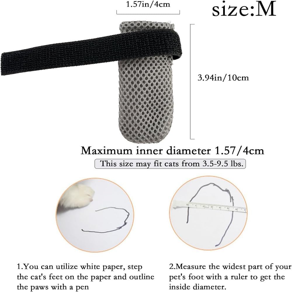 - Effortless Adjustable Application – Hook-and-loop straps customize fit for paws up to 1.57" diameter (3.94" length × 1.57" width). Quick to install/remove without discomfort—ideal for kittens to adult cats (3.5–9.5 lbs) .