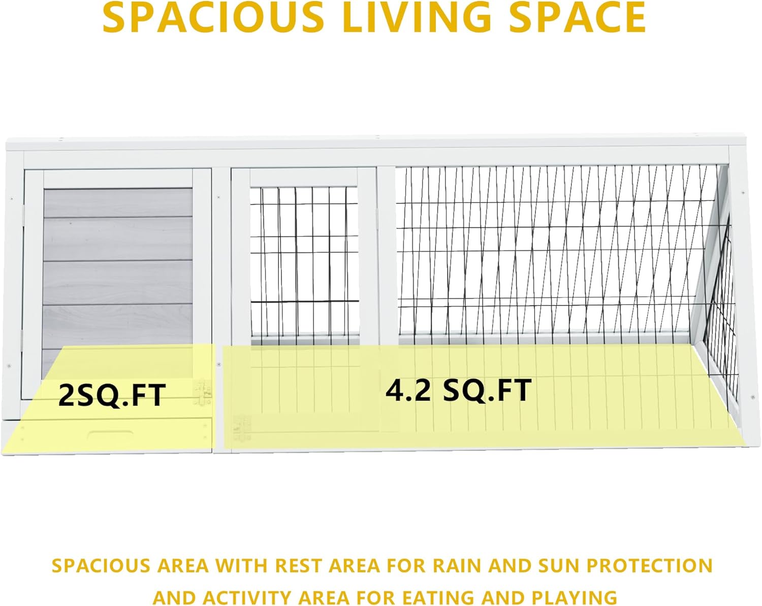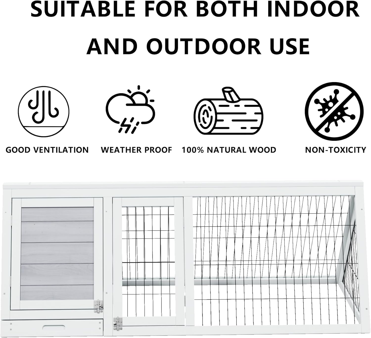 - Compact Size with Dual Zones: 46.45"L×19.7"W×17.52"H.This small chicken run features an open activity area for feeding and play, plus a sheltered resting zone (ideal as a brooder box for chicks) that’s waterproof and sun-protected. Perfect for chicken coops or multi-use setups.