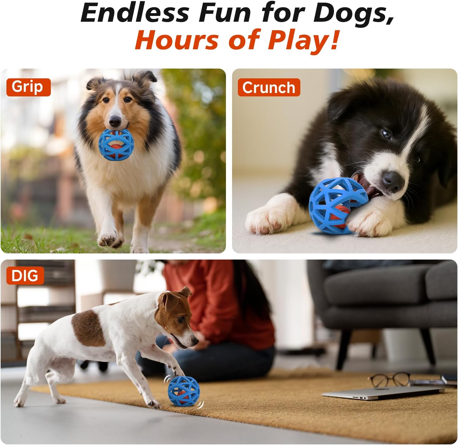 - 【Ball in Ball Design】:A smart bouncing ball is securely enclosed within a rubber shell, creating a unique "ball in ball" structure. This design keeps your dog mentally stimulated as they chase, paw, and try to retrieve the inner ball—without ever getting it out!
