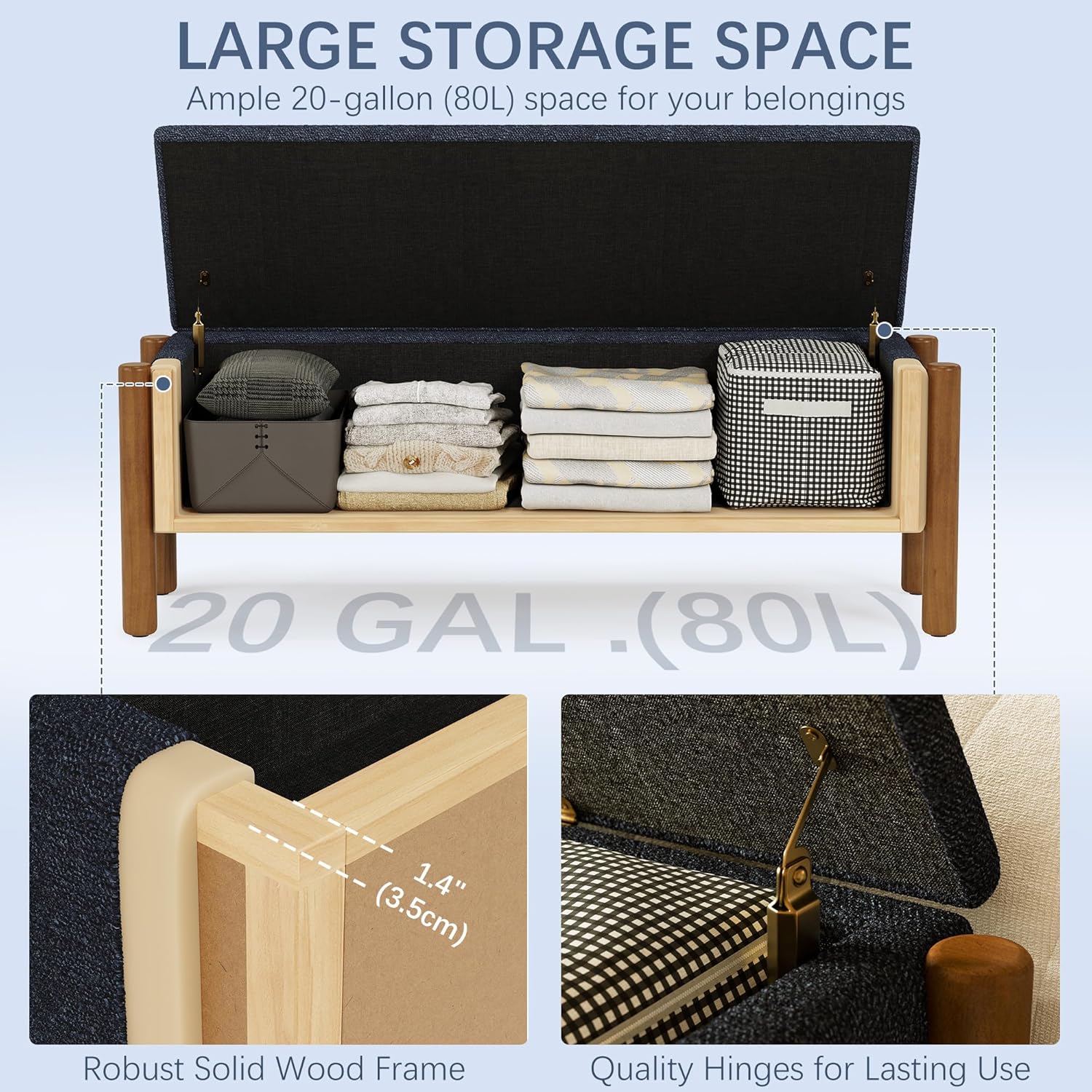 - SAFE & SMOOTH HARDWARE: Experience premium hinges offering silent, buttery-smooth lid operation with secure slow-close function. Child-safe mechanism prevents accidental slamming, ensuring worry-free access to your belongings. Quality hardware guarantees years of squeak-free performance.