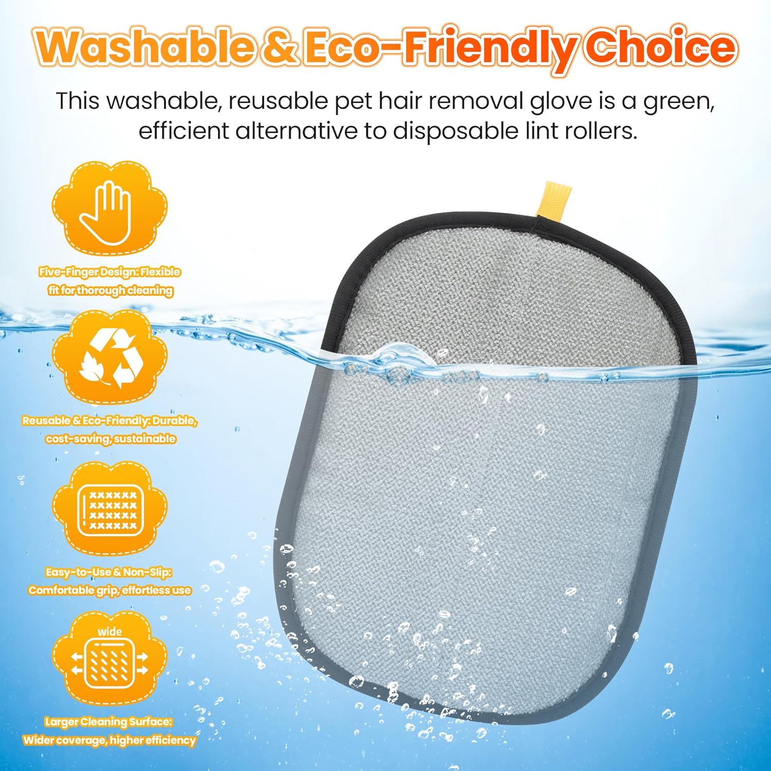 - 【Reusable and easy to clean】 This pet grooming glove is washable and reusable. Absorb cat and dog hair, lint, and dust, comb and wash, then simply rinse with water or machine wash.