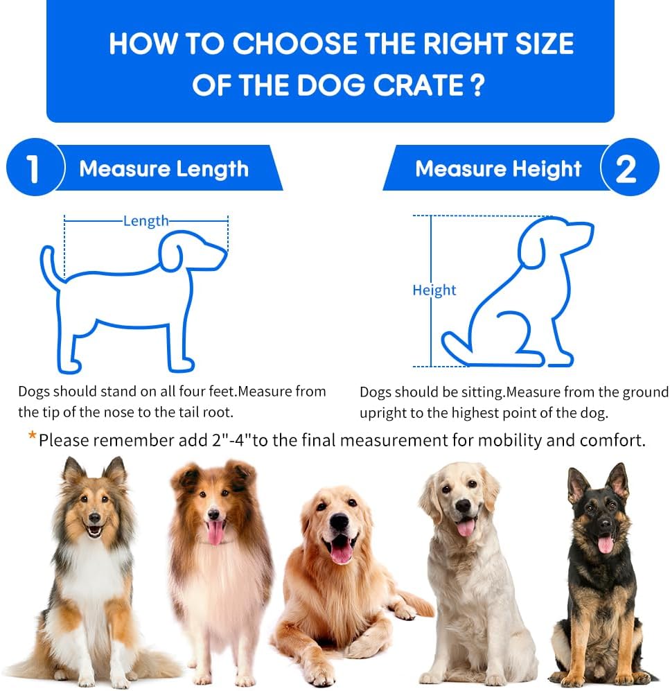 - 🐕[Upgraded Door Lock and Seat Cushion] This dog crate features an upgraded lock plate for aesthetics and ease of use. The door lock securely secures the door, ensuring your dog's safety and minimizing the noise of the door locking. The large dog crate comes with a matching soft seat cushion that's comfortable and removable, providing a comfortable and cozy experience for your dog.
