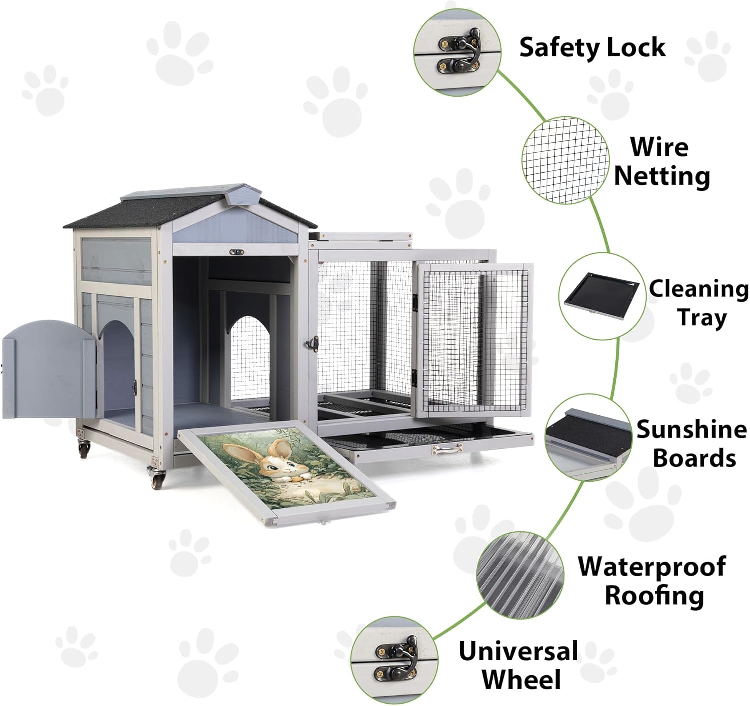 - Easy to Assemble:According to the instruction manual, you can assemble this outdoor rabbit hutch in no time, with detailed descriptions of each part, it will be the perfect companion for your rabbits