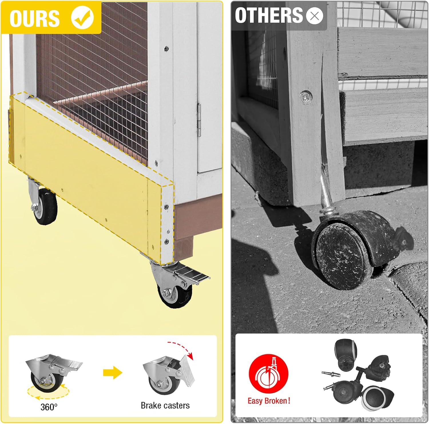 - Easy to Move Around: Four smooth-rolling wheels let you move the hutch indoors or outdoors without heavy lifting, so your pets can enjoy sunshine or shade anytime