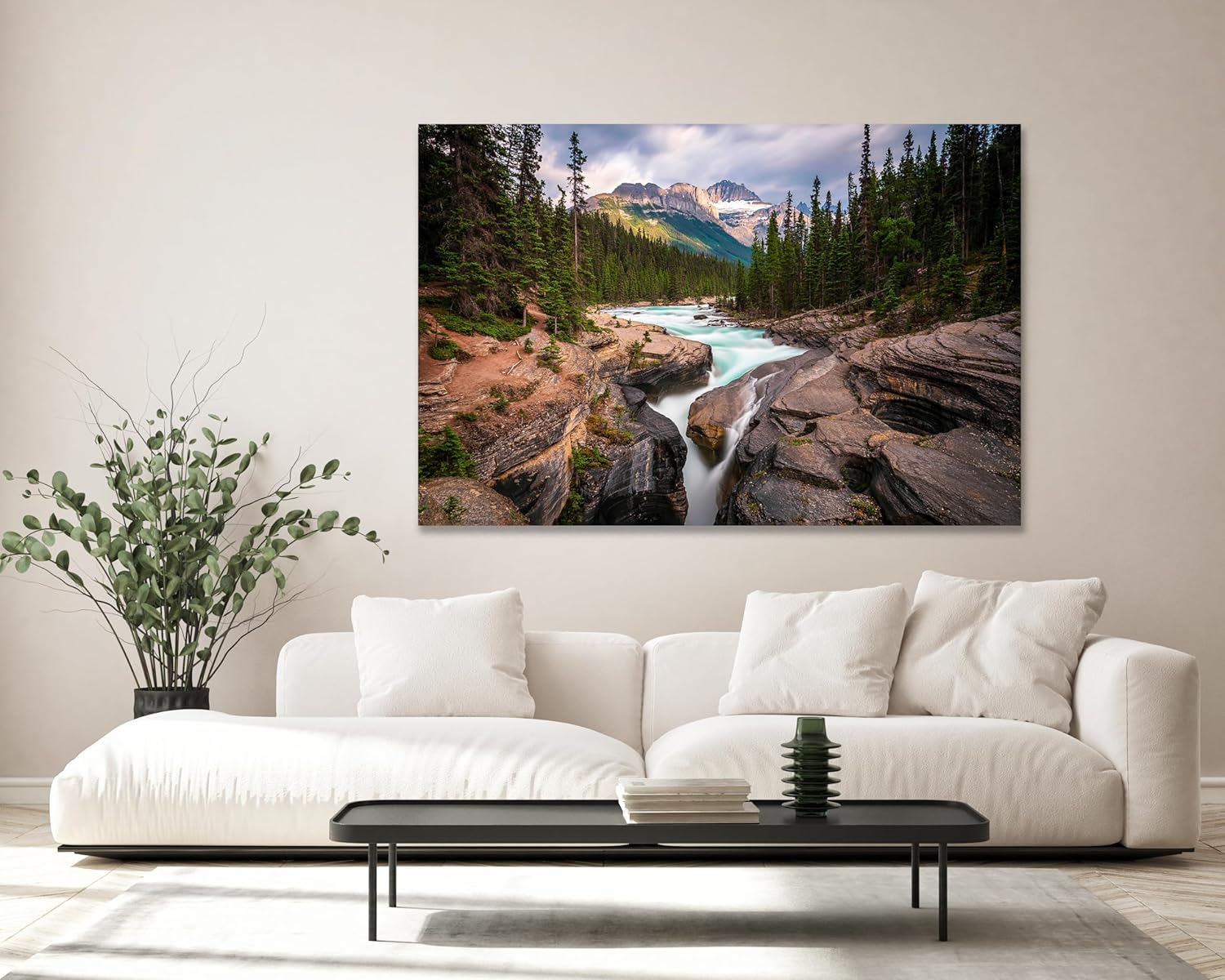 Nature Wall Art Prints - Ocean Forest Mountain Lake Canvas Landscapes - Small to Extra Large Living Room Bedroom Kitchen Bathroom Décor (Mountain River Waterfall, 31L" x 47W")
